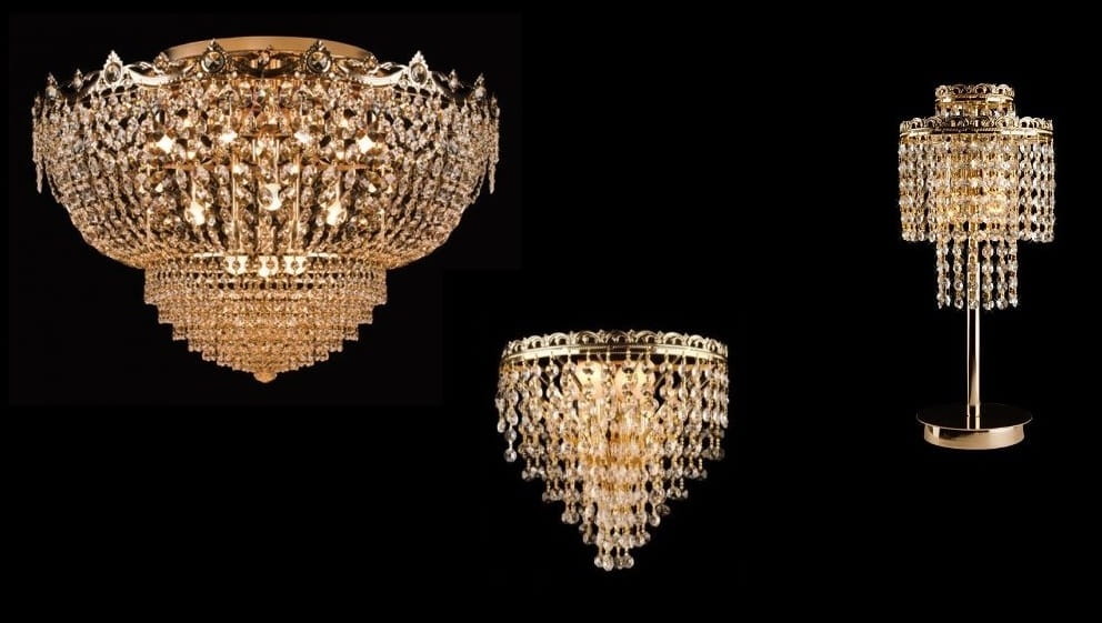 Elegancka lampka kryształowa. Armatura w kolorze złotym.