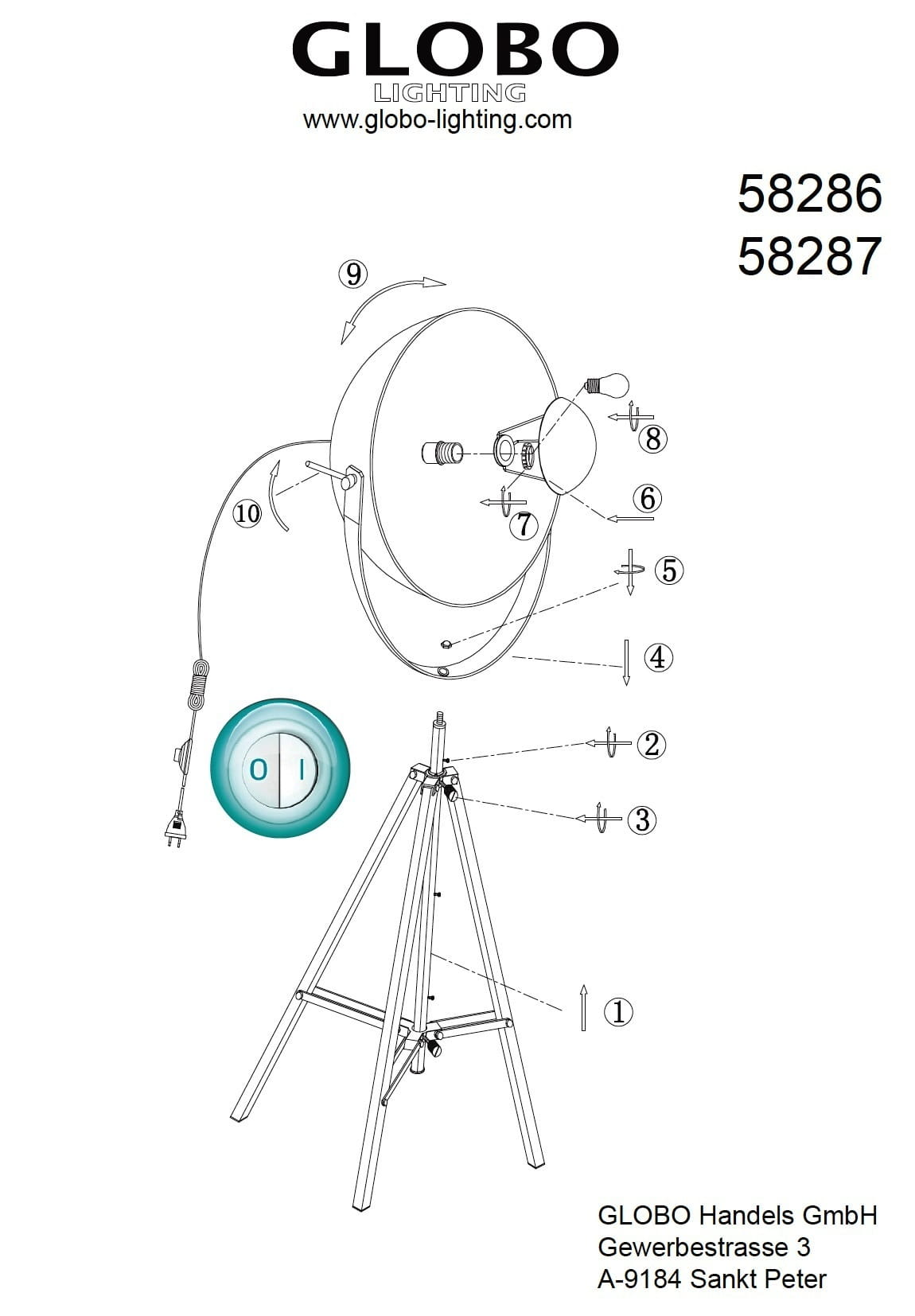 Industrialna lampa podłogowa typu "antena" austriackiej firmy Globo.
