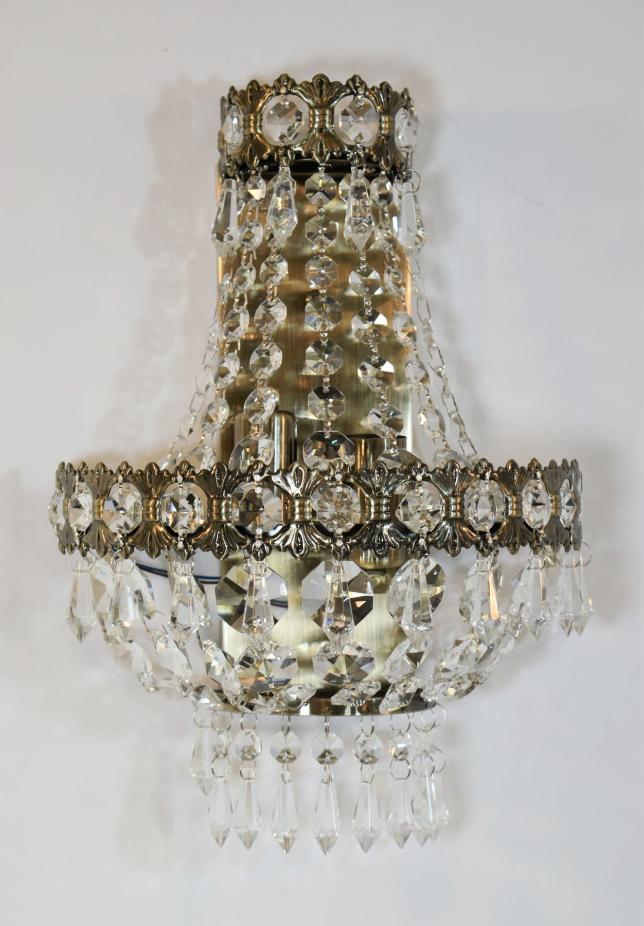 Stylowy kinkiet kryształowy w kolorze starego złota /mosiądz patyna/.