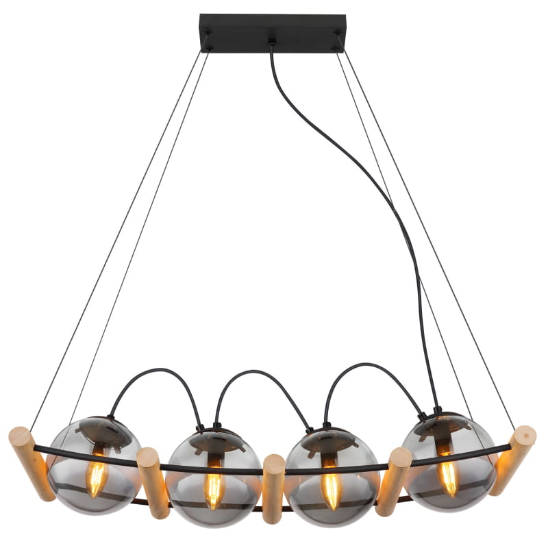 - czarny mat + naturalne drewno + dymiony /smoke/ klosz.