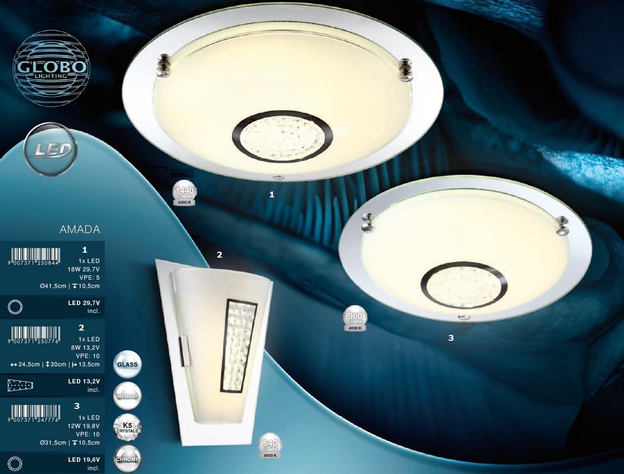 GLOBO KINKIET NOWOCZESNY Z KRYSZTAŁKAMI LED 8W AMADA 48240W