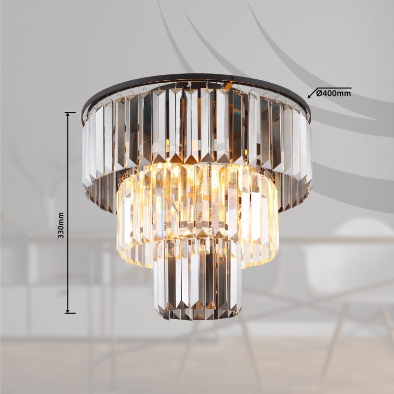 GLOBO KRYSZTAŁOWA LAMPA SUFITOWA PLAFON NAXIS 15695D BLACK SMOKE/CLEAR