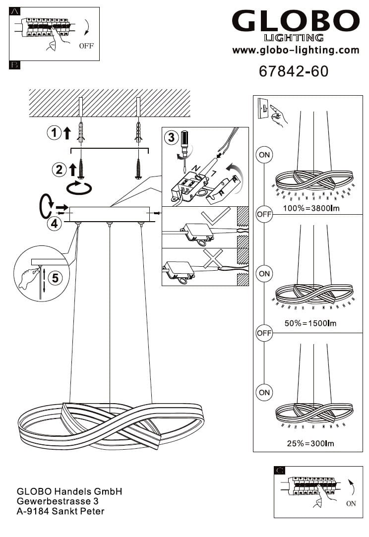 Lampa wyposażona jest w ściemniacz 25-50-100% sterowany za pomocą wyłącznika ściennego.