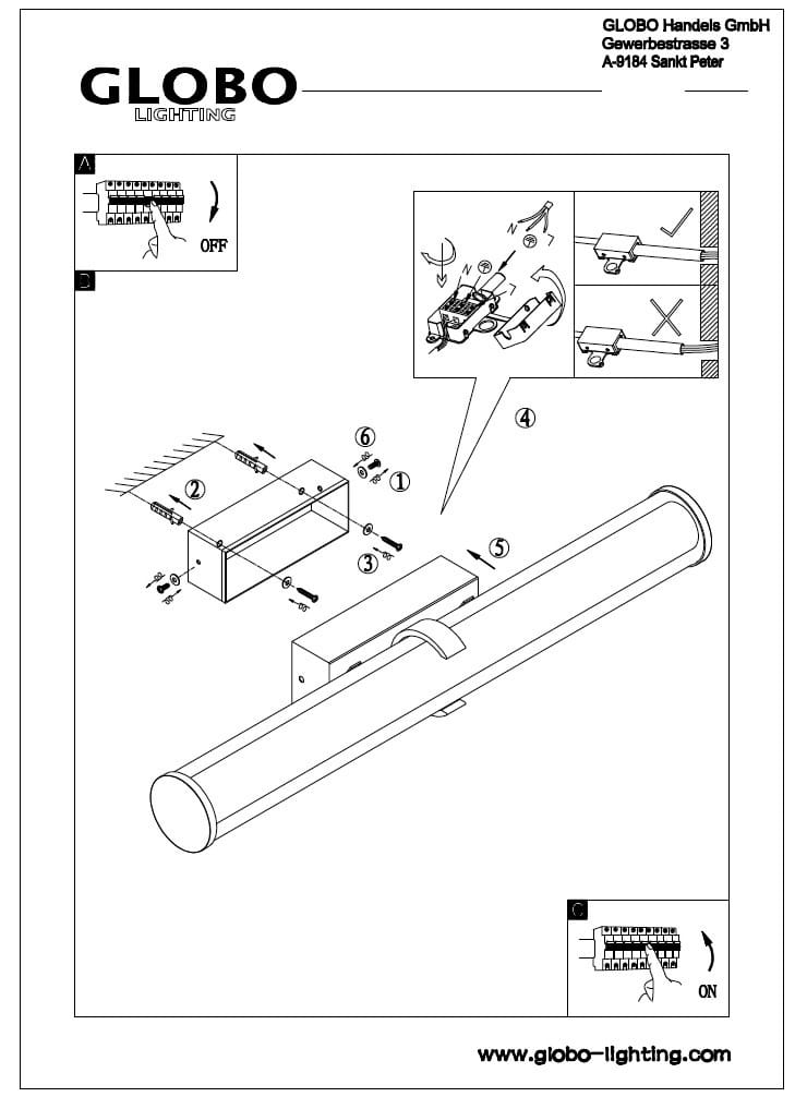Nowoczesny kinkiet łazienkowy LED austriackiej firmy Globo.
