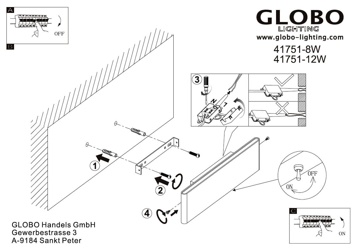 GLOBO NOWOCZESNY KINKIET LED Z WYŁĄCZNIKEM SIEGFRIED 41751-8W WHITE