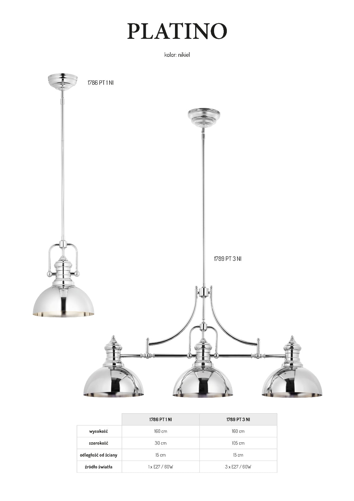 JUPITER LOFTOWA INDUSTRIALNA LAMPA WISZĄCA LOFT PLATINO PT 1NI NIKIEL