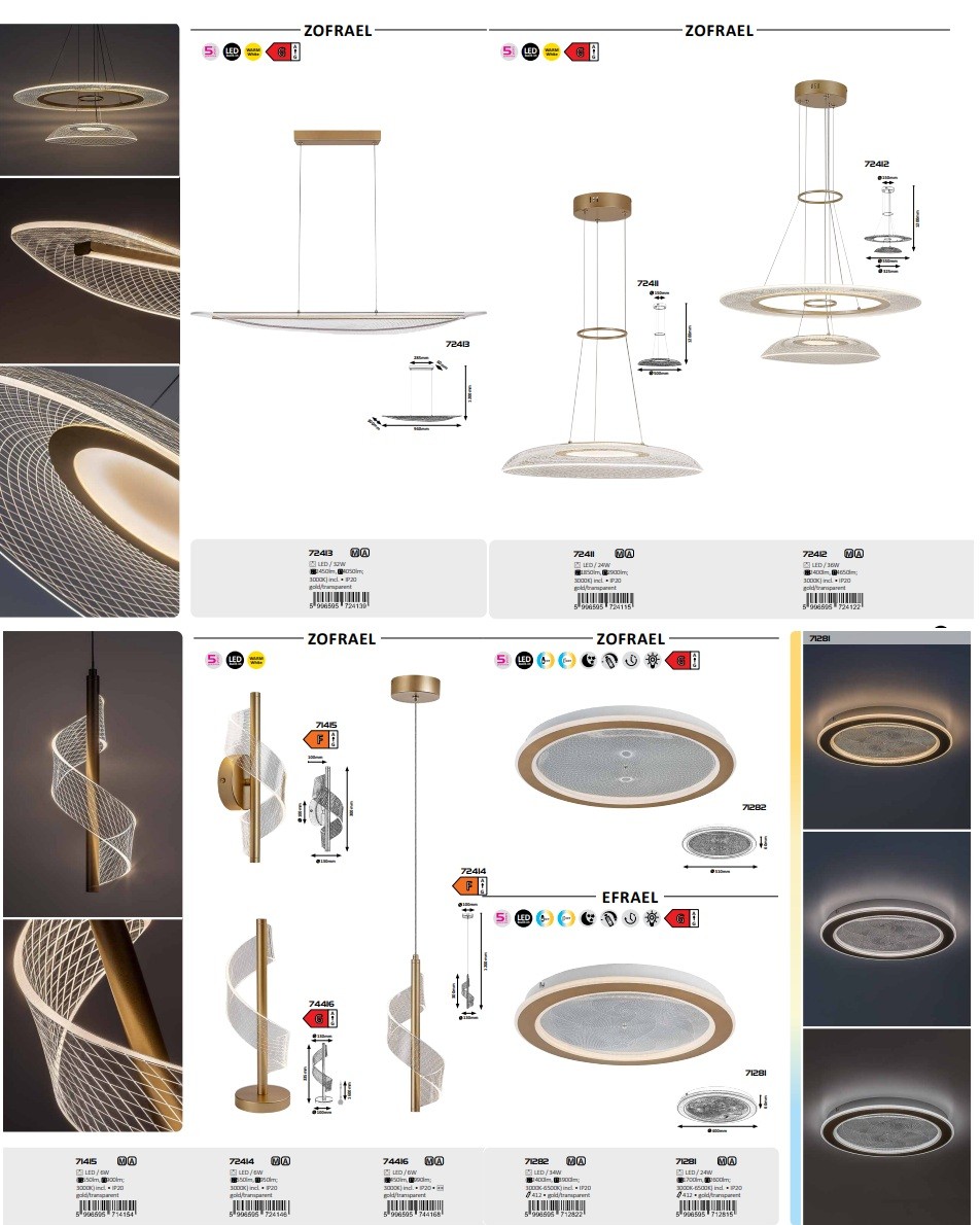 Lampa sufitowa Rabalux Zofrael to idealny wybór dla osób poszukujących nowoczesnej lampy o rozbudowanej funkcjonalności. Ta lampa LED o dużej średnicy wykonana jest z metalu w złotym kolorze i ma okrąły kształt. Klosz wykonany jest z przezroczystego akrylu, a na jego powierzchni znajduje się grawerowany geometryczny wzór. Lampa sufitowa może być zamontowana w wielu pomieszczeniach w domu: idealnie sprawdzi się w przestronnych salonach, jadalniach, przedpokojach lub sypialniach. Jej inteligentne funkcje pozwalają idealnie dopasować oświetlenie do indywidualnych potrzeb: posiada wbudowane źródło światła LED z możliwością regulacji barwy światła za pomocą pilota lub włącznika ściennego. Jasność, funkcja pamięci oraz timer mogą być regulowane pilotem, a także dostępna jest funkcja światła nocnego. Lampa jest energooszczędna i charakteryzuje się długą żywotnością.