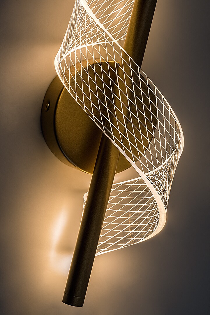Lampa ścienna Rabalux Zofrael polecana jest osobom poszukującym wyrafinowanej, uzupełniającej lampy o unikalnym designie. Ta wyjątkowa lampa ścienna wykonana jest z metalu w lśniącym złotym kolorze i uzupełniona przezroczystym kloszem akrylowym z delikatnym wzorem. Oprawa składa się z pojedynczego, cienkiego, pionowego elementu cylindrycznego, otoczonego kloszem w kształcie falującej wstęgi. Lampa ścienna może być zamocowana do ściany za pomocą niewielkiej, okrągłej, złotej podstawy dekoracyjnej. Posiada wbudowane źródło światła LED, które emituje ciepłe białe światło. Ten piękny model doskonale sprawdzi się w nowoczesnych salonach i sypialniach, gdzie pomoże stworzyć przytulną, domową atmosferę. Technologia LED zapewnia energooszczędne działanie i długą żywotność lampy.