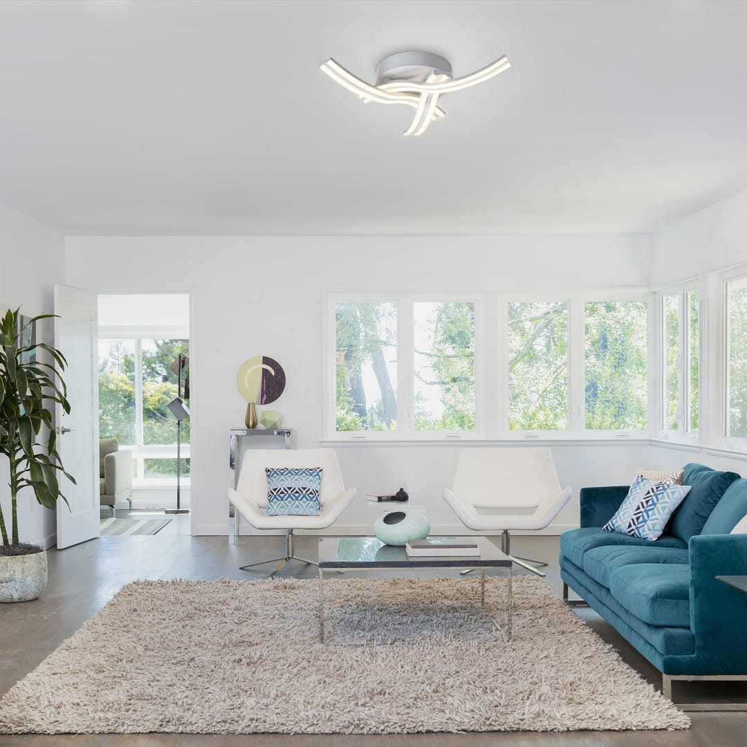Dzięki oryginalnemu designowi, nowoczesna lampa sufitowa Tulio będzie charakterystycznym dodatkiem do wnętrza Twojego salonu lub sypialni. Lampa posiada dekoracyjną bazę oraz jest wyjątkowa dzięki delikatnie zakrzywionym elementom przypominającym wstążki. Lampa wykonana z metalu i tworzywa sztucznego posiada wbudowane, energooszczędne źródło światła LED. Moc źródła należącego do klasy energetycznej A emituje ciepłe białe światło, tworząc w pomieszczeniu przyjemną, intymną atmosferę.