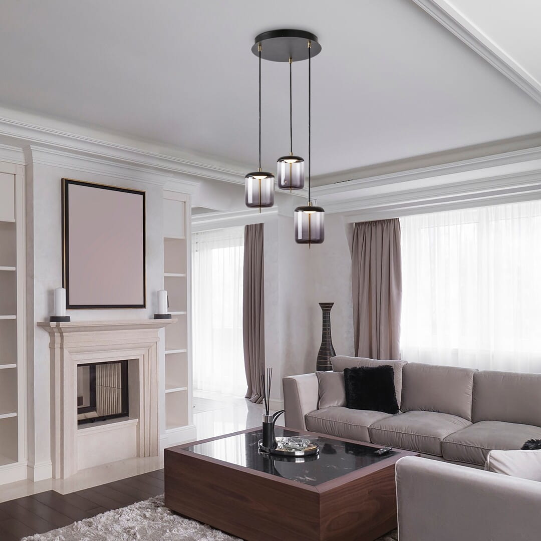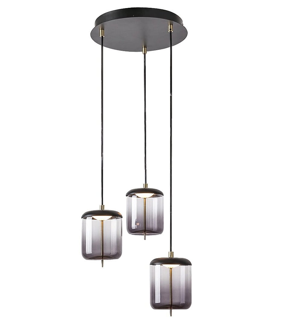 - czarny mat + złoty szczotkowany mosiądz + przydymione klosze.