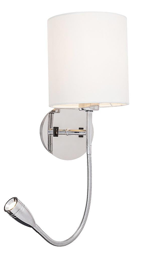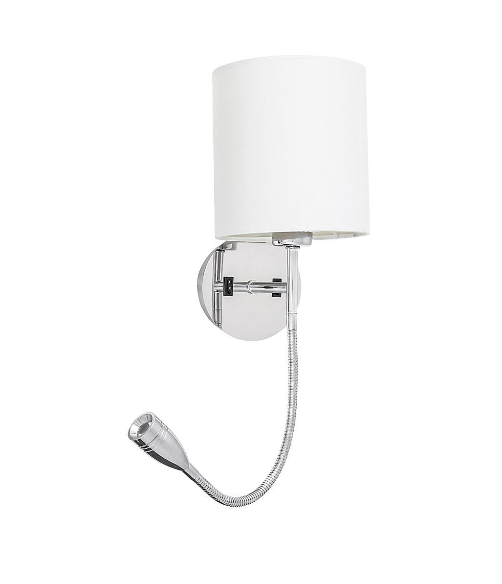 Nowoczesny kinkiet abażurowy z dodatkowym reflektorkiem LED do czytania.