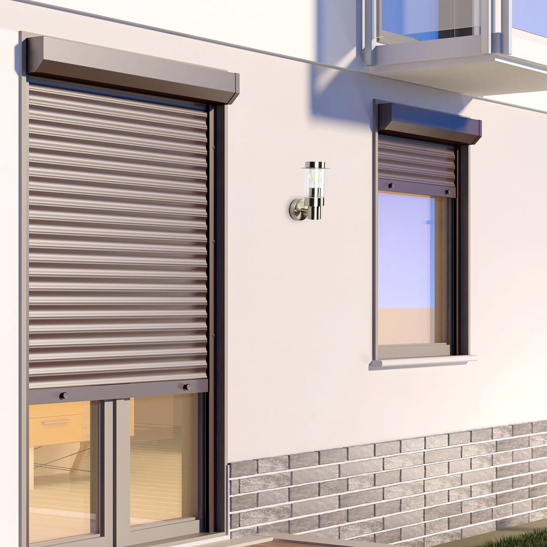 Nowoczesny kinkiet zewnętrzny elewacyjny z czujnikiem firmy Rabalux.