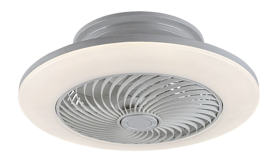 Nowoczesna lampa sufitowa Dalfon oferuje znacznie więcej niż przeciętne oświetlenie: ma wbudowany wiatrak oraz oferuje kilka innych, dodatkowych wspaniałych funkcji. Wykonany w srebrno-białej kolorystyce, okrągły model będzie doskonałym wyborem do Twojego salonu, sypialni lub gabinetu. Wykonany jest on z metalu oraz posiada klosz z tworzywa sztucznego. Lampa Dalfon jest ściemniana, tzn. jej jasność można dowolnie zmieniać. Ponadto jej temperaturę barwową można regulować w zakresie 3000–6500K. Obie te funkcje można wygodnie obsługiwać za pomocą pilota. Dodatkowo lampa posiada funkcję oświetlenia nocnego. Prędkość wiatraka można regulować natomiast w trzech stopniach. Wbudowane źródło światła LED charakteryzuje się mocą 40 W, strumieniem świetlnym 1700 lumenów.