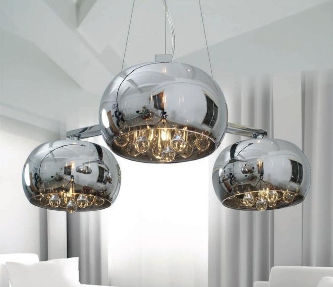 - chrom połysk + srebrne szklane klosze z efektem lustrzanym + przeźroczyste kryształki.